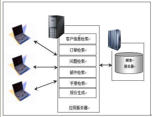 前臺(tái)接待人員接到客戶的請求之后,可以根據(jù)客戶提供的信息查詢到該客戶的所有相關(guān)信息,包括姓名、電話號碼、地址、所持有的產(chǎn)品號、歷史的購買和維修記錄等;根據(jù)用戶的問題描述,查詢出歷史記錄中相同的問題及解決方法,從而提供給用戶詳細(xì)的信息(維修方法,所需部件,需要的時(shí)間和詳細(xì)報(bào)價(jià)等);得到客戶的同意后,為用戶生成訂單。
