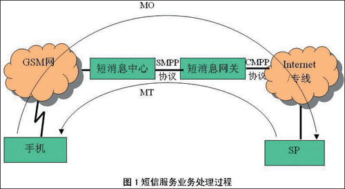 用戶收短信業(yè)務(wù)(即MT業(yè)務(wù),如短信群發(fā)等):提供此項業(yè)務(wù)的SP將短信內(nèi)容以CMPP協(xié)議發(fā)給連接的短信網(wǎng)關(guān),由短信網(wǎng)關(guān)根據(jù)用戶手機號段以SMPP協(xié)議發(fā)給用戶所屬的短信中心;