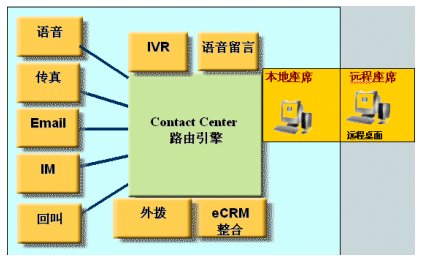 聯(lián)絡(luò)中心即Contact Center,它不同于傳統(tǒng)的客服中心,僅僅聯(lián)系客戶,而是傳統(tǒng)的Call Center 與CRM的有機(jī)結(jié)合。對(duì)于它來說,與客戶聯(lián)系的所有渠道,包括語音(例如電話、IVR、語速識(shí)別和聲音識(shí)別),網(wǎng)絡(luò)(例如E-mail),WEB,傳真和信函。這是一個(gè)輸入/輸出雙向的基于服務(wù)的環(huán)境,在這個(gè)環(huán)境中代理員處理所有有關(guān)銷售、客戶服務(wù)、營銷、電話營銷、搜集以及其他功能等方面的信息。聯(lián)絡(luò)中心從邏輯上是單體的,但從物理上是分散的。