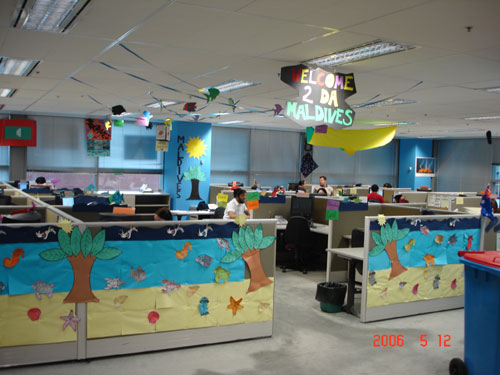 由于這種獨特的管理方式吸引了眾多的同行前來參觀,該中心特別安排了熱情的Sally負(fù)責(zé)導(dǎo)游。Sally帶我們參觀說的第一句話就是:“我真是喜愛我們的呼叫中心,這里的年輕人富有創(chuàng)意,充滿激情,他們非常喜歡在這里工作!庇谑俏覀儏⒂^了“蜘蛛俠”,“蒙娜麗莎”,“大英帝國”,“典雅餐廳”,“熱帶公園”,“幾何世界”,“海底世界”,“白色圣誕節(jié)”等不同的Pod,實在是好像到了聯(lián)合國。