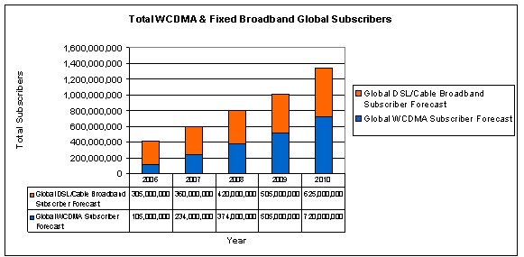 圖1:全球WCDMA和固定寬帶用戶預測