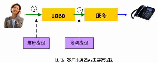 因此,根據客戶服務中心的實際情況,我們首先優(yōu)化了排班流程,建立并優(yōu)化了培訓流程。我們首先選擇這兩個流程的思路如下:從客戶角度來看,10086熱線在接受用戶咨詢服務時的主要流程如下:撥號→1860→服務提供→掛機。圖示如下: