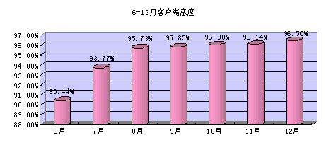 根據我們的客戶調查(每月一次),客戶對服務人員的業(yè)務能力的滿意度得到持續(xù)改進。具體數據如下圖:
