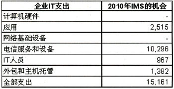 2010年預計IMS應用在企業(yè)中的收入機會(單位:百萬美元)