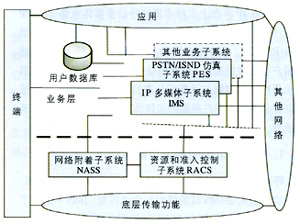 - PSTN/ISDN仿真子系統(tǒng)(PES):為經(jīng)過網(wǎng)關(guān)連接到IP網(wǎng)的傳統(tǒng)電話終端仿真PSTN/ISDN網(wǎng)絡(luò),保證傳統(tǒng)PSTN/ISDN業(yè)務(wù)的可用性和一致性,使得終端用戶不會意識到其實(shí)并沒有連接到PSTN/ISDN網(wǎng)絡(luò)。