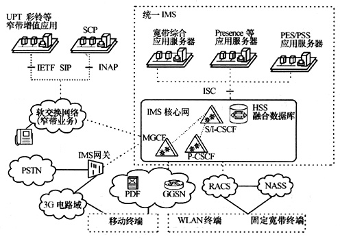 從國(guó)際標(biāo)準(zhǔn)化組織的研究來(lái)看,IMS的網(wǎng)絡(luò)架構(gòu)是覆蓋3G終端和固定寬帶終端的統(tǒng)一IMS。3GPPR7研究的是支持移動(dòng)和固定接入的統(tǒng)一IMS,ETSI
