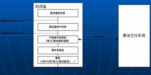 中間系統(tǒng)層架構(gòu)是一個基于軟件模塊結(jié)構(gòu)的抽象層次定義;它定義了中間件模塊在機(jī)頂盒中是怎樣被組織的以及在整個機(jī)頂盒軟件體系結(jié)構(gòu)中處于什么位置;