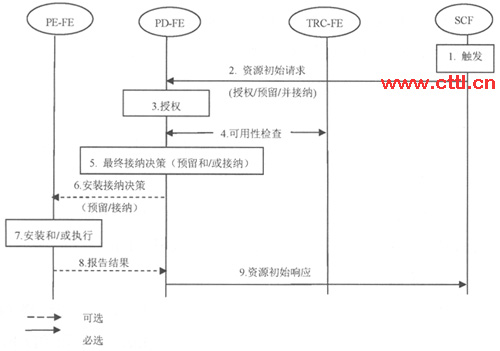PD-FE根據(jù)和PE-FE,TRC-FE的交互結(jié)果確定最終的接納決策,如果不接納,PD-FE應(yīng)向SCF回送資源初始響應(yīng)消息,其中包含拒絕原因。