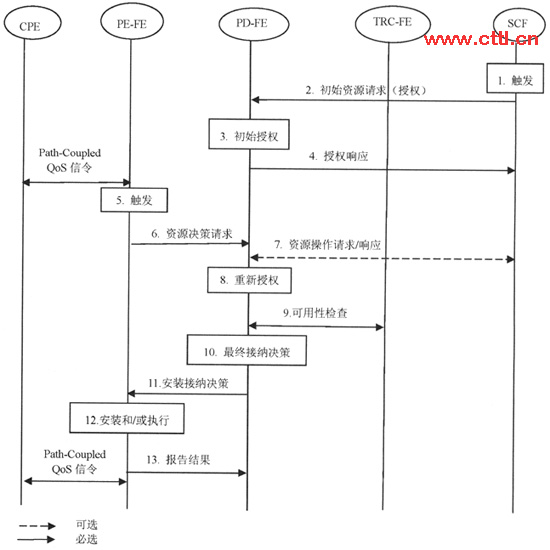 PE-FE收到來自CPE的Path-Coupled信令的觸發(fā),進(jìn)行資源決策請(qǐng)求。