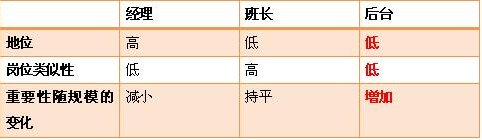 - 盡可能建立和“管理級(jí)別”并行的“專業(yè)級(jí)別”,提高后臺(tái)管理員的地位,同時(shí)減少關(guān)鍵崗位流動(dòng)性(輪崗機(jī)制下尤其要關(guān)注)。