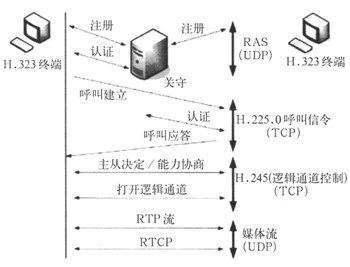 H.323終端之間建立通信關(guān)系通常執(zhí)行四個(gè)控制過(guò)程:RAS,H.225.0呼叫控制(Q.931信令),連接控制(H.245)及媒體RTP信道建立的過(guò)程。