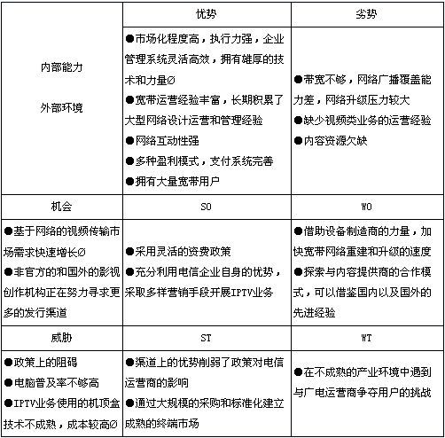 綜上所述,在我國IPTV市場上,電信運營商、廣電運營商、設(shè)備商、內(nèi)容提供商等均面臨著激烈競爭,各企業(yè)必須培育起自己的核心競爭力,才能在該市場中占有一席之地。