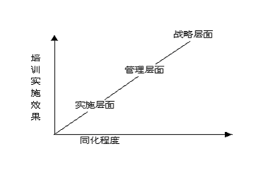 為了確保培訓(xùn)實施效果能達(dá)到預(yù)期的效果及水平即達(dá)到預(yù)期的認(rèn)識水平,來自于管理層的執(zhí)行力必不可少,任何一項培訓(xùn)工作如果不能自下而下的進(jìn)行“洗腦”即同化過程,很難保證培訓(xùn)效果。簡言之,我們需要從戰(zhàn)略角度到管理層面直到實施層面的同化過程。