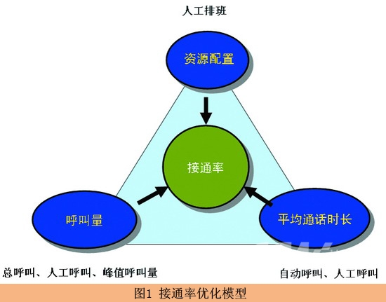 根據(jù)上面的分析,可以設計出呼叫中心接通率優(yōu)化的模型(圖1)。