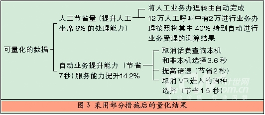 從圖3的分析中可以看出,如果人工服務采取1項措施,自動業(yè)務采取3項措施,則可以得出如下的量化結果: