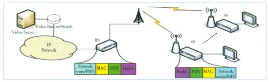 基于WiMAX的IPTV接入網(wǎng)的功能框圖如圖2所示,包括視頻服務器(Video Server)、視頻路由/交換器(Video