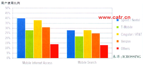 美國的移動搜索業(yè)務(wù)發(fā)展迅速,領(lǐng)先全球市場。根據(jù)美國市場調(diào)查公司的調(diào)查,美國移動用戶中,經(jīng)常使用移動搜索的用戶達到22%。美國主流運營商均已經(jīng)推出了移動搜索業(yè)務(wù),其中Sprint和合并后的Cingular/AT&T業(yè)務(wù)發(fā)展較好。
