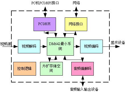 圖2 以DM642為核心的多媒體終端的系統(tǒng)框圖