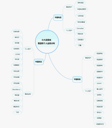 從三大運營商集團和個人業(yè)務分布可看出:針對行業(yè)和品牌所提供的服務方面存在巨大的可挖掘市場。