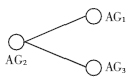 本文把參與IP視頻會(huì)議所有主機(jī)中的AM組織成分層排列圖結(jié)構(gòu),作為混合式組播的控制拓?fù)?并在主機(jī)申請(qǐng)加入會(huì)議時(shí)根據(jù)其帶寬處理能力和一定的算法規(guī)定它的入度最大值和出度最大值,它們分別也是剩余入度和剩余出度的初始值。每個(gè)分層排列圖都對(duì)應(yīng)一棵以排列圖為結(jié)點(diǎn)單位的樹。如圖3所示的以與會(huì)主機(jī)為單位的拓?fù)浣Y(jié)構(gòu)是一個(gè)由3個(gè)A4,2結(jié)構(gòu)(AG1、AG2和AG3)所組成的分層排列圖。圖3也可以看作如圖4所示的以排列圖為單位的樹結(jié)構(gòu),即以排列圖AG2為根、以AG1和AG3為葉子的一棵樹狀拓?fù)洹TO(shè)在分層排列圖中,父排列圖AGi中的結(jié)點(diǎn)i1和i2分別是子排列圖AGj的數(shù)據(jù)源結(jié)點(diǎn)和備用數(shù)據(jù)源結(jié)點(diǎn),AGj中的結(jié)點(diǎn)j1和j2分別是i1和i2對(duì)應(yīng)的根結(jié)點(diǎn),則在樹拓?fù)渲懈概帕袌DAGi與子排列圖AGj的連線實(shí)際上包括2條