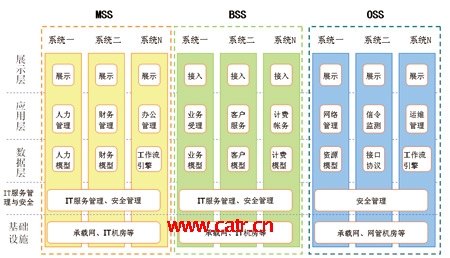 從系統(tǒng)部署來看,目前各大運(yùn)營企業(yè)都以集團(tuán)與省公司為主要的建設(shè)與管理維護(hù)單位,建成了集團(tuán)與省兩級(jí)模式的支撐系統(tǒng)。集團(tuán)公司的系統(tǒng)主要提供面向全公司的企業(yè)管理、經(jīng)營分析等功能;省公司從職能管理單位逐步轉(zhuǎn)向了兼顧管理、生產(chǎn)的單位,具有了越來越多的生產(chǎn)職能,在運(yùn)營支撐系統(tǒng)建設(shè)中的作用較為突出,一般情況下,在遵循集團(tuán)公司的總體指導(dǎo)思想下,可自行規(guī)劃與建設(shè)本省的支撐系統(tǒng);市公司的生產(chǎn)職能有所削弱,主要負(fù)責(zé)市場(chǎng)營銷、客戶支撐以及設(shè)備的現(xiàn)場(chǎng)維護(hù)等工作,因而主要是支撐系統(tǒng)的使用單位。