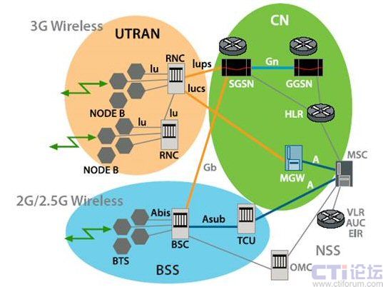 (RNC) 這一元素。在 3G UMTS 網(wǎng)絡(luò)中,RNC 可執(zhí)行無(wú)線電資源管理、移動(dòng)管理和加密功能,它可通過(guò)媒體網(wǎng)關(guān)連接至電路交換核心網(wǎng)絡(luò),實(shí)現(xiàn)電路交換語(yǔ)音服務(wù),此外,它還可連接至數(shù)據(jù)包交換核心網(wǎng)絡(luò)中的