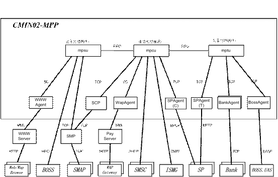 Provider)的交易請求,根據(jù)用戶的賬戶設(shè)置情況,與本地?cái)?shù)據(jù)庫(或銀行、或BOSS系統(tǒng))交互,完成對用戶支付賬戶的扣費(fèi)操作;業(yè)務(wù)受理部分MPSU:完成業(yè)務(wù)受理的功能,處理管理員、營業(yè)廳操作員、或用戶的業(yè)務(wù)管理請求,進(jìn)行相應(yīng)查詢、配置或計(jì)算,并返回結(jié)果;代理部分Agent,例如:WWWAgent,BankAgent等負(fù)責(zé)與各個(gè)外部實(shí)體的通信;另外,系統(tǒng)還應(yīng)有輔助模塊用來完成系統(tǒng)各進(jìn)程的守護(hù)、監(jiān)視、控制、以及系統(tǒng)性能數(shù)據(jù)的采集功能。