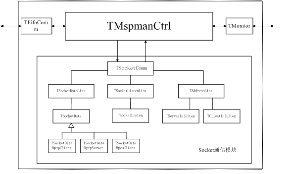 TSocketComm類是Socket通信的總控類,它負(fù)責(zé)管理MSPMAN模塊的Socket通信,包括與MPCU和MPTU模塊的鏈路維護(hù)、收發(fā)消息等。