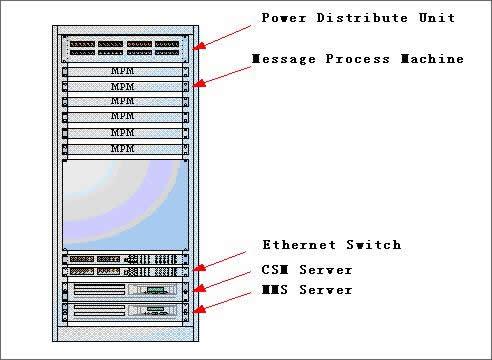 整個(gè)SMSS系統(tǒng)設(shè)備采用標(biāo)準(zhǔn)19英寸、42U高機(jī)架,包含了MPM、CSM及其它等功能實(shí)體。