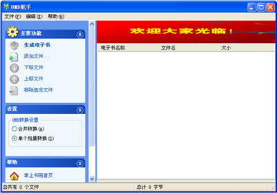 也有不少用戶利用UMD轉(zhuǎn)換工具將電子書轉(zhuǎn)換成UMD格式,但市場上的UMD轉(zhuǎn)換工具都不支持批量轉(zhuǎn)換功能,比如筆者最近想好好復(fù)習(xí)下英語。想將大量的英語資料制成手機(jī)電子書,在上下班坐車的時(shí)候?qū)W習(xí),使用普通的轉(zhuǎn)換器就會耗費(fèi)許多時(shí)間。經(jīng)過筆者不懈的上網(wǎng)挖掘,終于發(fā)現(xiàn)了一個好東東。掌上書院推出了首款UMD手機(jī)電子書批量制作工具UMD舵手1.0beta,據(jù)介紹,UMD舵手是目前唯一款UMD手機(jī)電子書批量制作工具,最多可一次性同時(shí)轉(zhuǎn)換300本以上的圖書,為喜愛自己動手制作手機(jī)電子書的用戶提供了極大的方便,DIY個屬于自己的手機(jī)圖書館不再是夢想了。