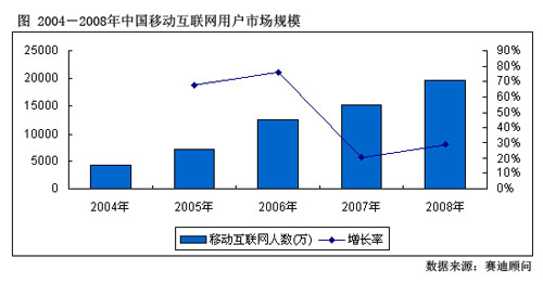 圖:2004-2008年中國(guó)移動(dòng)互聯(lián)網(wǎng)用戶(hù)市場(chǎng)規(guī)模