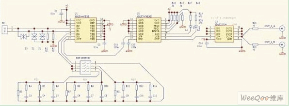 在本方案中,我們采用MAX4445配合外部阻容均衡網(wǎng)絡(luò)固定補(bǔ)償特定的傳輸距離,并結(jié)合MAX7474自動(dòng)均衡的特點(diǎn)來補(bǔ)償網(wǎng)線質(zhì)量、安裝距離和阻容器件參數(shù)分散性等帶來的差異,很好地解決了1200米視頻信號的自適應(yīng)傳輸。