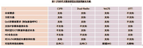 LTE時(shí)代主要的語(yǔ)音解決方案及其比較;