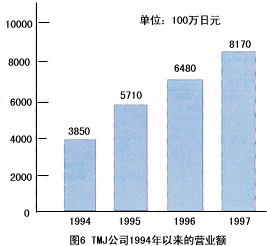 ——該公司成立于1992年,現(xiàn)在是日來第4大電話營銷專業(yè)公司。該公司是從原福武書店的電話中心獨立出來的。福武書店的”進研學習會”(類似于中國的函授大學)在日本全國擁有401萬會員。對這些會員的客戶服務目前占TMJ業(yè)務的50%,盡管TMJ成立時間不長。但由于積極引進先進技術(CTI,IVR,ACD,預撥號)和先進的管理方式,發(fā)展非常迅猛。1997年營業(yè)額達到81億7千萬日元,總席位有1,500個,外線數3,00O條,登錄業(yè)務代表達4,350人,該公司擁有6個呼叫中心(東京3個,大販、名古屋、岡山各1個),每月平均呼入電話63萬個,呼出電話60萬個。該公司的主要業(yè)務有:訂購、預約受理、促銷活動、銷售支持、客戶服務中心,其中面向消費者/面向企業(yè)的比例為4∶1。圖6為TMJ公司1994年以來的營業(yè)額。