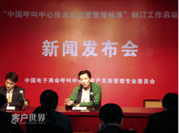 2月7日,中國電子商會呼叫中心與客戶關(guān)系管理專業(yè)委員會(CNCCA)在北京信息產(chǎn)業(yè)部萬壽路辦公區(qū)召開“中國呼叫中心技術(shù)及運(yùn)營管理規(guī)范”制訂工作啟動新聞發(fā)布會。在京各主要新聞媒體高度關(guān)注在國家宏觀政策轉(zhuǎn)向服務(wù)外包的大背景下,呼叫中心中國標(biāo)準(zhǔn)的出臺將為產(chǎn)業(yè)的發(fā)展和國際競爭格局的變化帶來如何的影響。呼叫中心行業(yè)各知名廠商、運(yùn)營商、服務(wù)提供商代表出席新聞發(fā)布會。會議同時(shí)發(fā)布了《2007年中國呼叫中心運(yùn)營標(biāo)桿管理報(bào)告》。