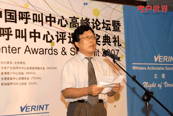 中國最佳呼叫中心評選由中國惟一的國家級呼叫中心行業(yè)協(xié)會CNCCA主辦,代表中國惟一接軌亞太地區(qū)最佳呼叫中心評選,是信息產(chǎn)業(yè)部惟一認(rèn)定的行業(yè)獎項。在今天的頒獎晚宴上,信息產(chǎn)業(yè)部經(jīng)濟體制改革與經(jīng)濟運行司王秉科副司長到會致辭,他代表信產(chǎn)部向本年度獲獎的各單位和個人表示祝賀,并希望中國呼叫中心高峰論壇越辦越好,真正辦成中國呼叫中心行業(yè)同仁自己的年度盛會,真正成為與世界各地區(qū)呼叫中心行業(yè)同仁交流溝通的重要平臺。
