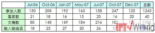 FG IPTV第七次會(huì)議共有來自全球近160名專家參加了會(huì)議,共收到文稿119篇。中國有20名專家參加了會(huì)議,提交文稿37篇,文稿主要集中在體系架構(gòu)、需求、安全、服務(wù)質(zhì)量、中間件等方面。此次會(huì)議的所有輸出文檔將輸入到相應(yīng)的研究組(SG)當(dāng)中。此次會(huì)議由于要對(duì)所有的輸出文檔進(jìn)行最后的整理、完善,因此日程非常緊張,每個(gè)工作組都幾乎每天工作到深夜,以便能夠保證所有輸出的工作文檔的質(zhì)量。
