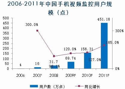 諾達(dá)咨詢(xún)預(yù)測(cè),2006年中國(guó)手機(jī)監(jiān)控用戶(hù)以4萬(wàn)點(diǎn)計(jì)算,2009年隨著運(yùn)營(yíng)商3G網(wǎng)絡(luò)建設(shè)和3G業(yè)務(wù)的推進(jìn),用戶(hù)數(shù)將有大幅度增長(zhǎng),2010年用戶(hù)將達(dá)到158.31萬(wàn)點(diǎn),2011年達(dá)到451.18萬(wàn)點(diǎn)。