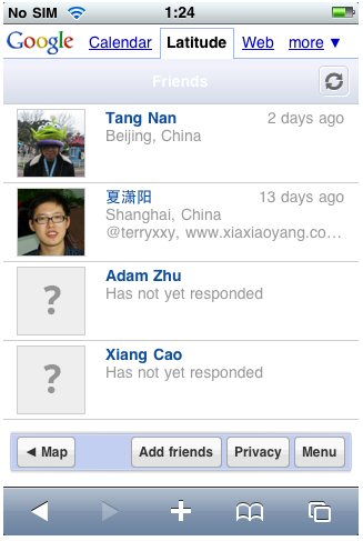 打開后會默認(rèn)顯示所有Google Profile里加入Latitude的好友: