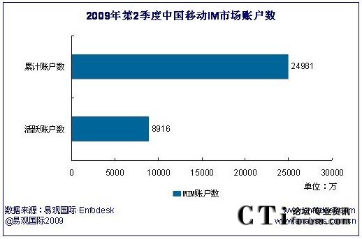 2009年第2季度中國移動IM市場活躍賬戶數達8916萬
