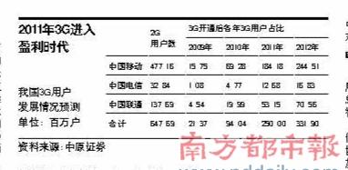 圖:我國3G用戶發(fā)展情況預(yù)測(cè)