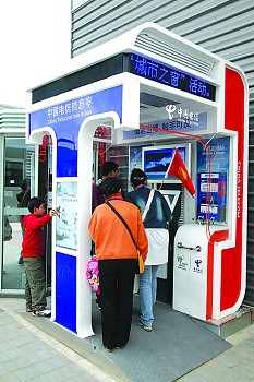 中國(guó)電信的視頻傳送服務(wù),在4月30日的世博會(huì)開(kāi)幕式上也大顯身手。眾多媒體向中國(guó)電信提出了及時(shí)傳送世博開(kāi)幕式信號(hào)的需求。上海市民和外地游客對(duì)電話咨詢世博信息表現(xiàn)出了極大的熱情。在永不落幕的“網(wǎng)上世博”網(wǎng)站達(dá)到了一天961萬(wàn)次的頁(yè)面點(diǎn)擊量,對(duì)網(wǎng)民來(lái)說(shuō),“網(wǎng)上世博”真可謂“門庭若市”!拔逡弧保緢(bào)記者漫步世博園區(qū),目睹了各類游客在享受美好的信息生活,參展組織者依靠安全、穩(wěn)定的網(wǎng)絡(luò)進(jìn)行調(diào)度指揮試運(yùn)營(yíng)。讓我們以一組照片來(lái)見(jiàn)證信息世博。