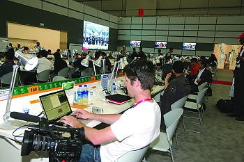 世博的主新聞中心一開(kāi)門便受到媒體的“熱捧”。中國(guó)電信的后臺(tái)信息系統(tǒng)顯示,世博主新聞中心的數(shù)據(jù)量一直居高不下,因?yàn)橛浾哒χ米烂嫔系?00M有線寬帶高速上網(wǎng)、收發(fā)稿件、傳送采訪的視頻。在世博主新聞中心一樓記者工作大廳,想在300個(gè)坐席里找個(gè)空位可不是容易的事情。