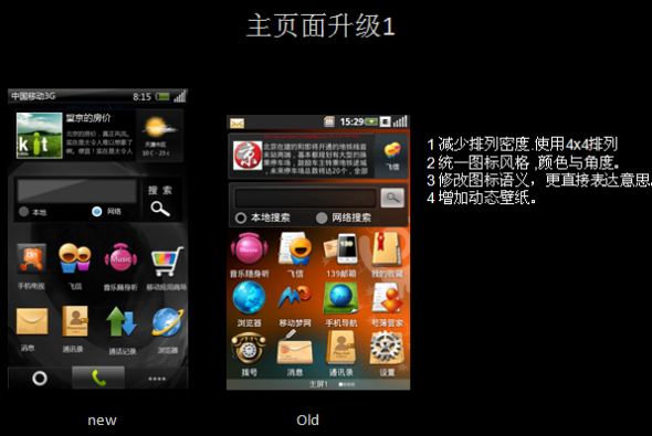 此外,OPhone2.0的主頁(yè)面升級(jí)還包括:增加多應(yīng)用的快捷入口;改進(jìn)固定撥號(hào)頁(yè)面的快捷方式;強(qiáng)調(diào)語(yǔ)音撥號(hào)的位置;增加備選人的列表下拉;以及快捷的3D切換主屏幕。