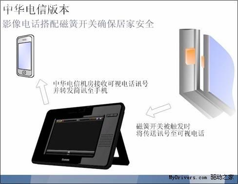 除多媒體服務(wù),AMOR8210內(nèi)建之千里眼服務(wù)更突破業(yè)界標(biāo)準(zhǔn)使其與磁簧開(kāi)關(guān)整合提供居家安全嶄新服務(wù)。當(dāng)磁簧開(kāi)關(guān)被觸發(fā)告警時(shí),AMOR8210攝影鏡頭將開(kāi)啟錄像功能并上傳畫(huà)面且同步發(fā)送簡(jiǎn)訊至行動(dòng)電話通知使用者接著使用者可透過(guò)3G手機(jī)觀看錄像檔案或直接撥接AMOR8210進(jìn)行實(shí)時(shí)監(jiān)控。