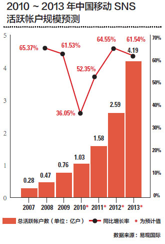 IDC:社交網(wǎng)絡包括手機游戲會成為移動互聯(lián)網(wǎng)的推手。像新浪微博可以標識出來自黑莓平臺或者iPhone平臺等等,從中可以觀察到,大量的微博是從移動設備發(fā)出的,社交特性是與移動特性相關的,結(jié)合微博這種社交化的媒體在互聯(lián)網(wǎng)的興起,結(jié)合移動設備、服務的興起,可以推動移動互聯(lián)網(wǎng)的興起。