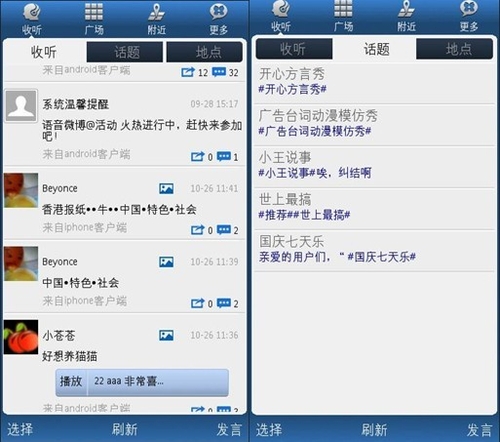 語音微博1.6 for Symbian新加入的私信和經(jīng)驗(yàn)系統(tǒng)的加入使得用戶間信息的交流更緊密、分享更便捷。從此,千里傳音不是夢(mèng)。