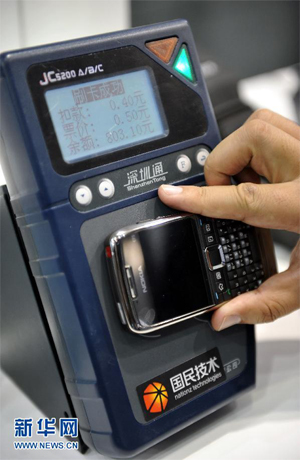 圖:裝入具備“一卡通”功能SIM卡的手機可直接刷卡乘坐地鐵