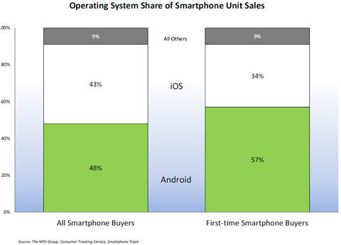 2011年四季度iPhone在美智能機市場份額達43%