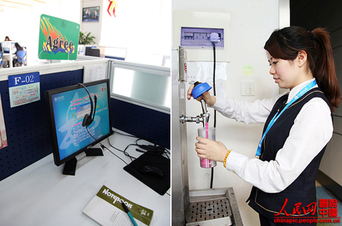 話務(wù)員也會有需要休息的時候,到時只要按下“事忙”按鍵,并且在自己的座位上方插上一塊agree的牌子就可以出去休息了。不過,每個話務(wù)員每天只有1800秒的休息時間,包括上洗手間、喝水等。